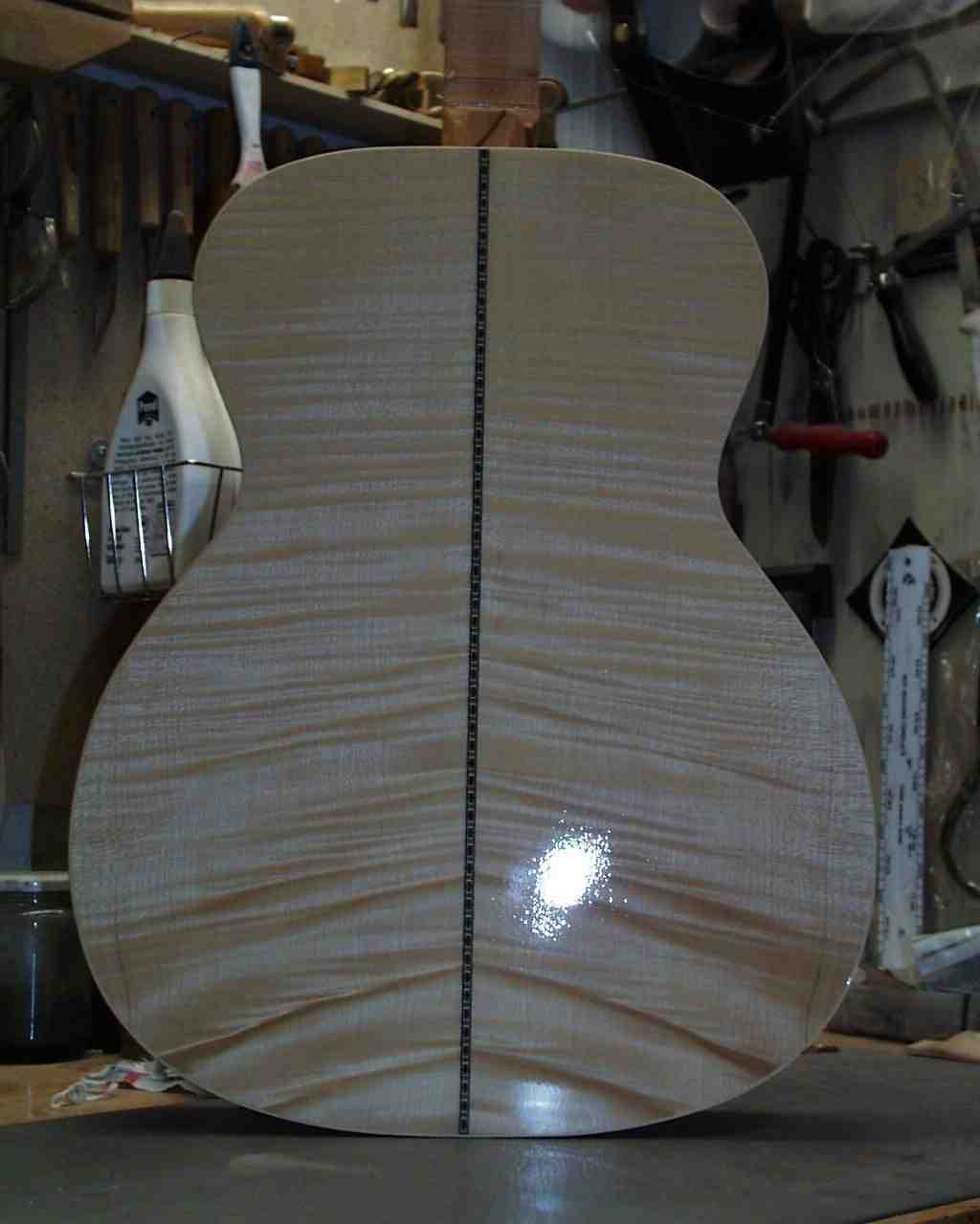 Folgend noch ein Rücken mit Riegelahorn gleich nach dem Lackieren.