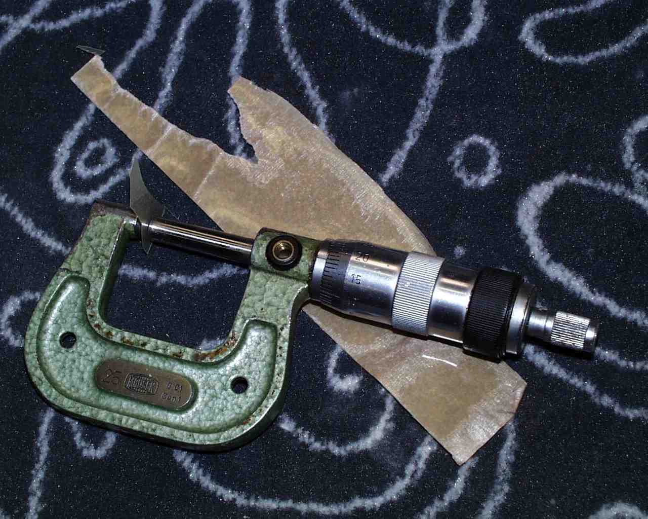 Gerade an den rückständen abgeklebter Stellen kann man leicht die Schichtdicke des Lacks messen. Gewöhnlich werden Schichtdicken um 0,15mm erreicht.