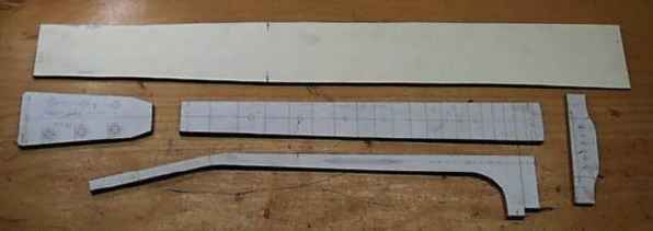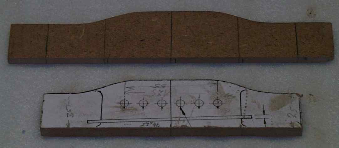 Neben den oben beschriebenen Schablonen machte ich im laufe der Arbeit noch eine für die Kopfplattenform, den Halsfuß, den Steg.