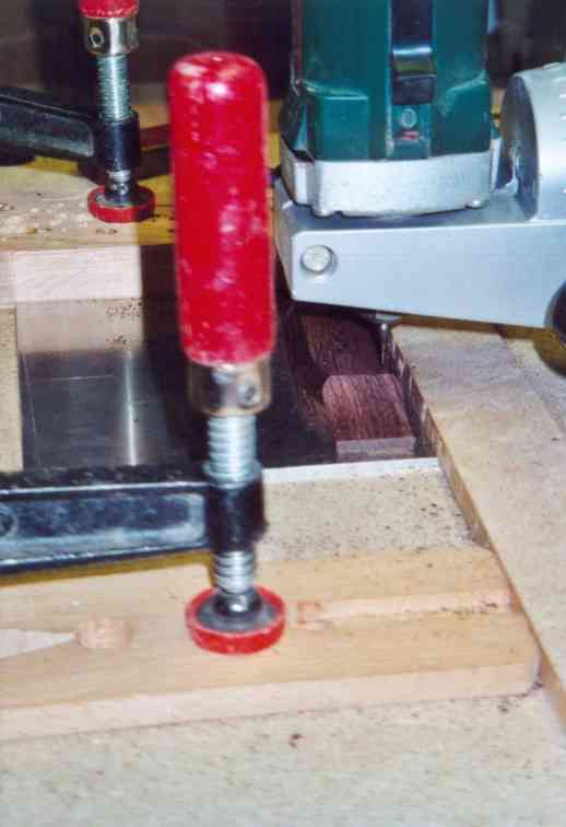 Mit der Oberfräse und einem Anlauffräser werden an der Oberseite Radien angebracht.