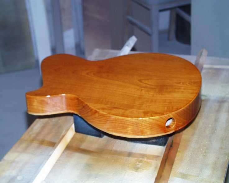 Dieser hier gezeigte Sunburst hier ist pur auf Holz aufgetragen. Vorteil hierbei ist, dass die Holzmaserung voll zur Geltung kommt. Das Auftragen der Beize geschah mit einer Sata "Mini-Jet" Spritzpistole und einem ca. 7-8cm großen Rundstrahl bei ca. 2 bar. Die Decklackierung mit einer Sata "Jet 90" HLVP mit 1,8'er Düse bei 3,5 bar und vollem Breitstrahl. Alles klar?