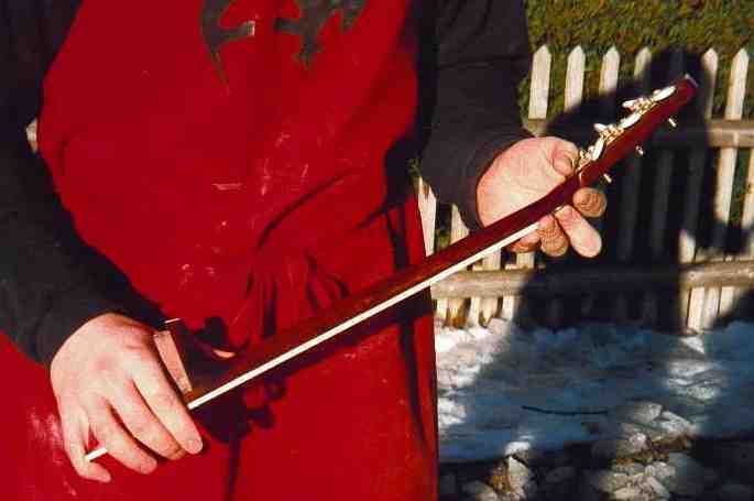 das Messer fängt sich in der Maserung unter dem Griffbrett und kann, wenn man es nicht schafft aus der Maserung zurück zur Leimfuge zu kommen, das Griffbrett spalten und abreißen.