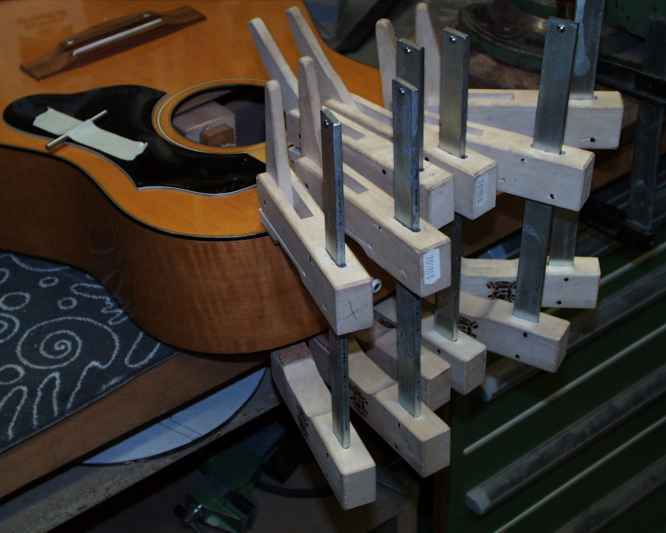 Der überschüssige Leim muß entfernt werden, die Schrauben angezogen und über Nacht läßt man das ganze trocknen.
