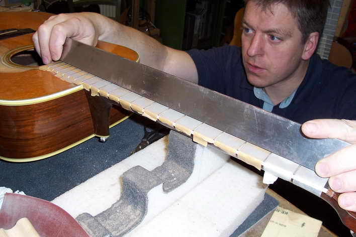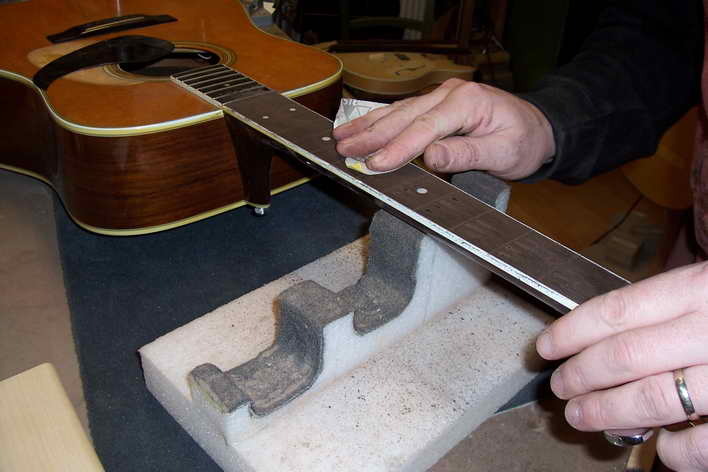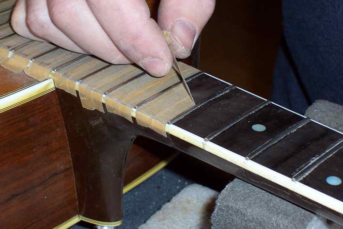 Hier zeige ich die Neubundierung einer älteren Martin Westerngitarre.