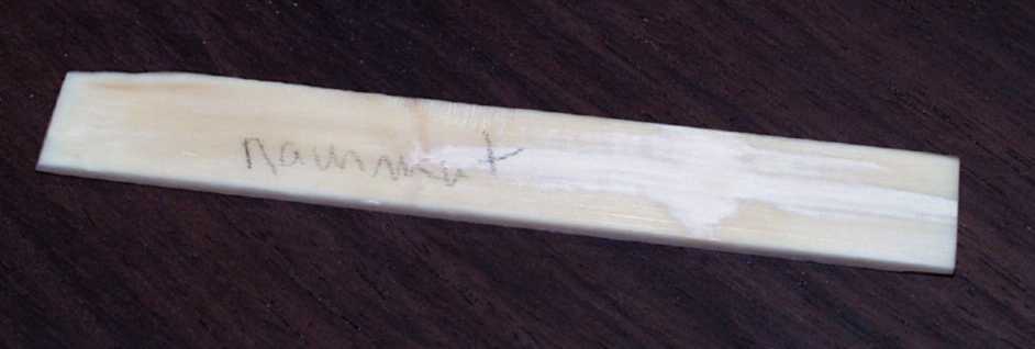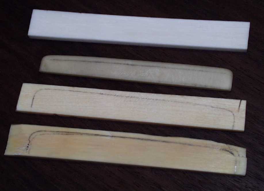 Da Elfenbein sagenhafte tonale Übertragungseigenschaften besitzt und ein wundervolles Spielgefühl vermittelt, werden bei besonders wertvollen Instrumenten solche Materialien eingesetzt. Ein normaler Steg für eine "New Yorker" kann leicht mal 180,00DM kosten. Da steht man nun da - was kann man machen?