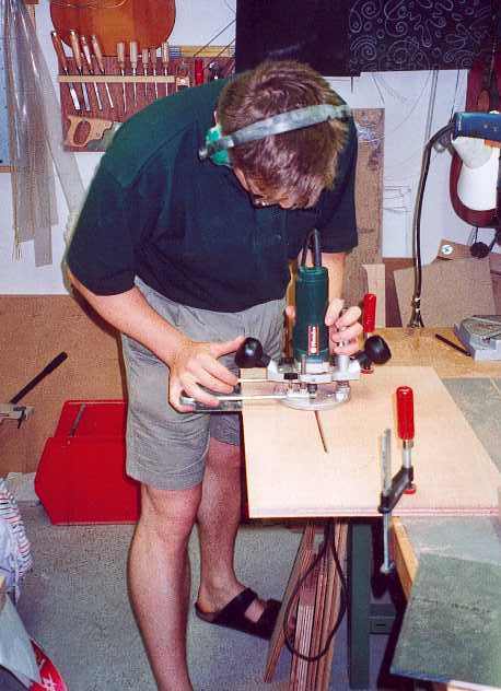 Jeder, der schon einmal eine akustische Gitarre gebaut hat weiß, daß es nicht gerade zu den einfachsten Arbeitsvorgängen gehört, Zargen zu biegen. Normalerweise biegt der Gitarrenbauer über einem Biegeeisen die Zarge frei Hand. Das etwa 2,5mm starke Holz wird dazu ca. 5 Minuten in Wasser eingelegt und auf dem heißen Biegeeisen gebogen. Um die Außenkontur genau herzustellen, wird die Zarge immer wieder an eine Vorlage gehalten. Vorteil dieser Vorgehensweise ist der geringe Aufwand den man benötigt um zu starten: ein Biegeeisen und eine Schablone aus Preßspan.