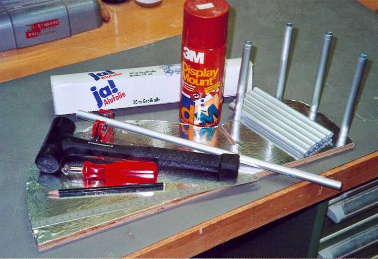 Bevor es losgeht, muß natürlich das gesamte Material bereitgestellt werden. Bei mir sah die Materialliste so aus: