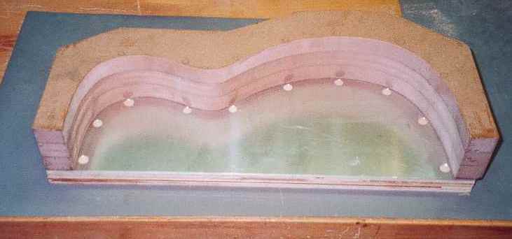 Die Hohlform bestimmt die Form des Korpus. Die gewünschte Gitarrenform muss um die Zargenstärke kleiner aufgezeichnet werden. Diese Hohlform ist das Herzstück des Benders und man macht sich ohne viel Aufwand für jedes Modell eine eigene Form. Es gibt auch eine Konstruktion, mit der man dann einen Cutaway formen kann.