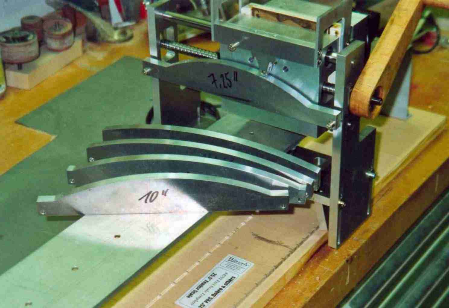 - Statt digitalem Massstab geht auch eine umgebaute Schieblehre mit Noniusskala in entsprechender länge (günstiger)